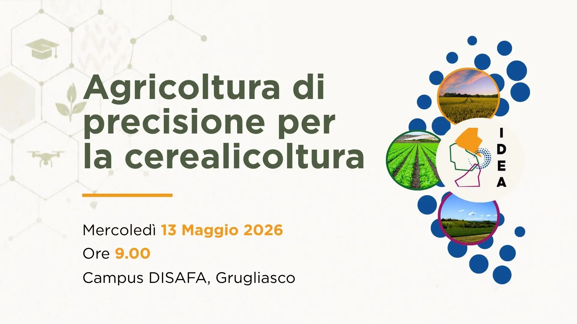 In questo contesto il Progetto IDEA propone un workshop, che si svolgerà il prossimo 13 maggio presso il Campus DISAFA a Grugliasco, e sarà dedicato a un tema sempre centrale: l’agricoltura di precisione applicata alla cerealicoltura.